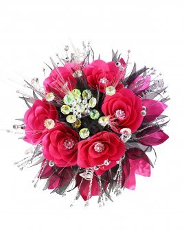 El Ramo de XV Años es una obra de arte única y elegante, elaborada con flores cortadas a láser y ensambladas en alambre delgado. Cada flor está decorada cuidadosamente con pedrería y perlas, creando un diseño sofisticado y lleno de brillo. Este ramo es el complemento perfecto para tu celebración de quince años, añadiendo un toque de glamour y distinción a tu look. Ideal para cualquier temática o color de vestido, el Ramo de XV Años hará que tu día especial sea aún más memorable y espectacular.