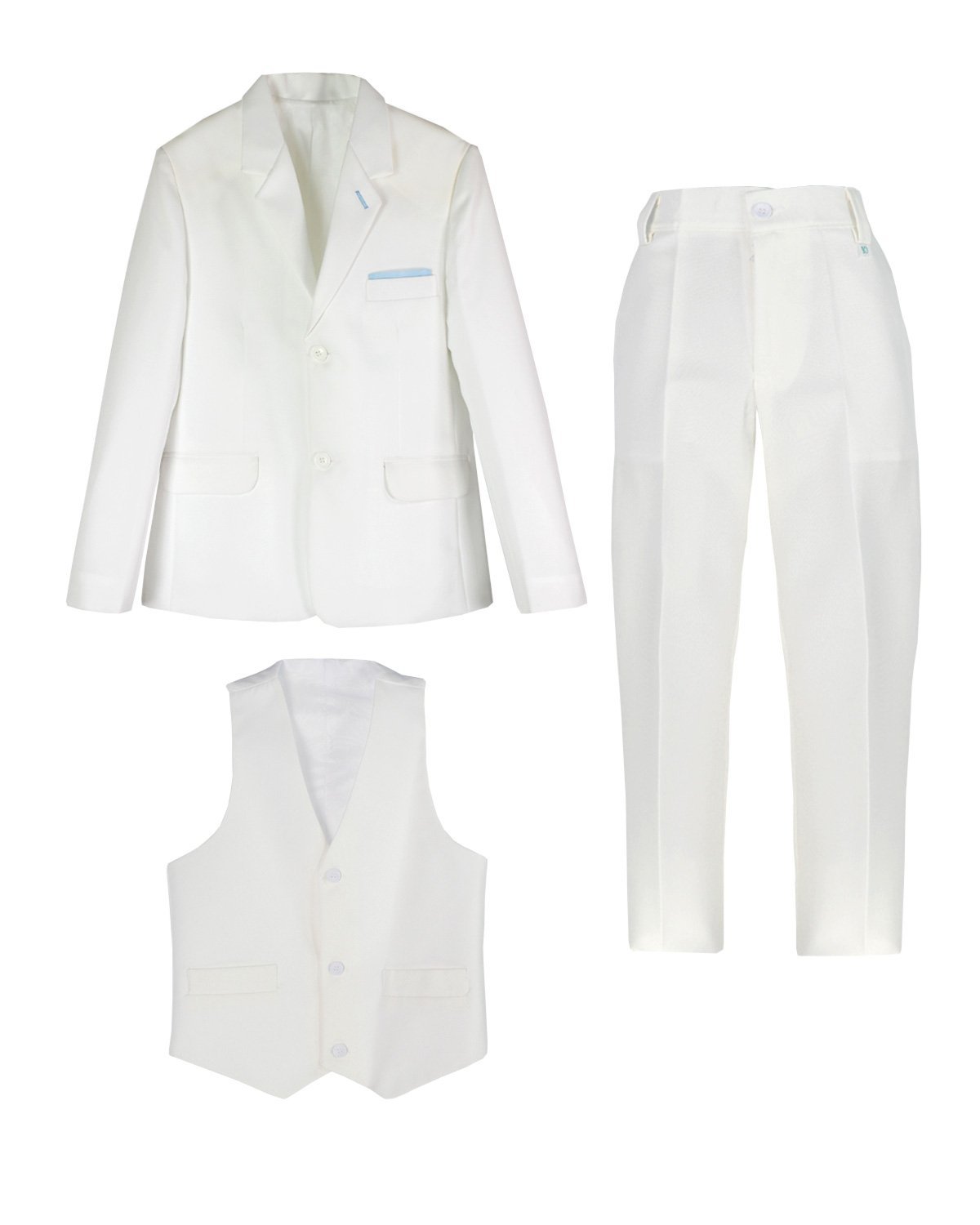 Este hermoso traje para niño está hecho de una tela de alta calidad que es conocida por su suavidad, durabilidad y resistencia. El traje está compuesto por un pantalón y una chaqueta, ambos confeccionados con un tejido que combina 80% poliéster y 20% algodón, lo que hace que sea cómodo de usar durante todo el día. La chaqueta tiene un corte clásico y elegante con solapa y botones en la parte delantera, mientras que el pantalón tiene un diseño simple y elegante. Este traje de Maylin es ideal para ocasiones especiales como bodas, bautizos y comuniones.