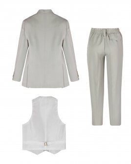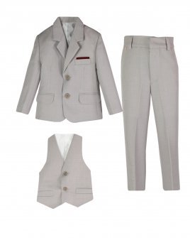 Este hermoso traje para niño está hecho de una tela de alta calidad que es conocida por su suavidad, durabilidad y resistencia. El traje está compuesto por un pantalón y una chaqueta, ambos confeccionados con un tejido que combina 80% poliéster y 20% algodón, lo que hace que sea cómodo de usar durante todo el día. La chaqueta tiene un corte clásico y elegante con solapa y botones en la parte delantera, mientras que el pantalón tiene un diseño simple y elegante. Este traje de Maylin es ideal para ocasiones especiales como bodas, bautizos y comuniones.