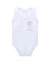 Strap onesie for boys with "My Baptism" logo. Elegant and comfortable, ideal for the baptism ceremony and commemorative photos.
