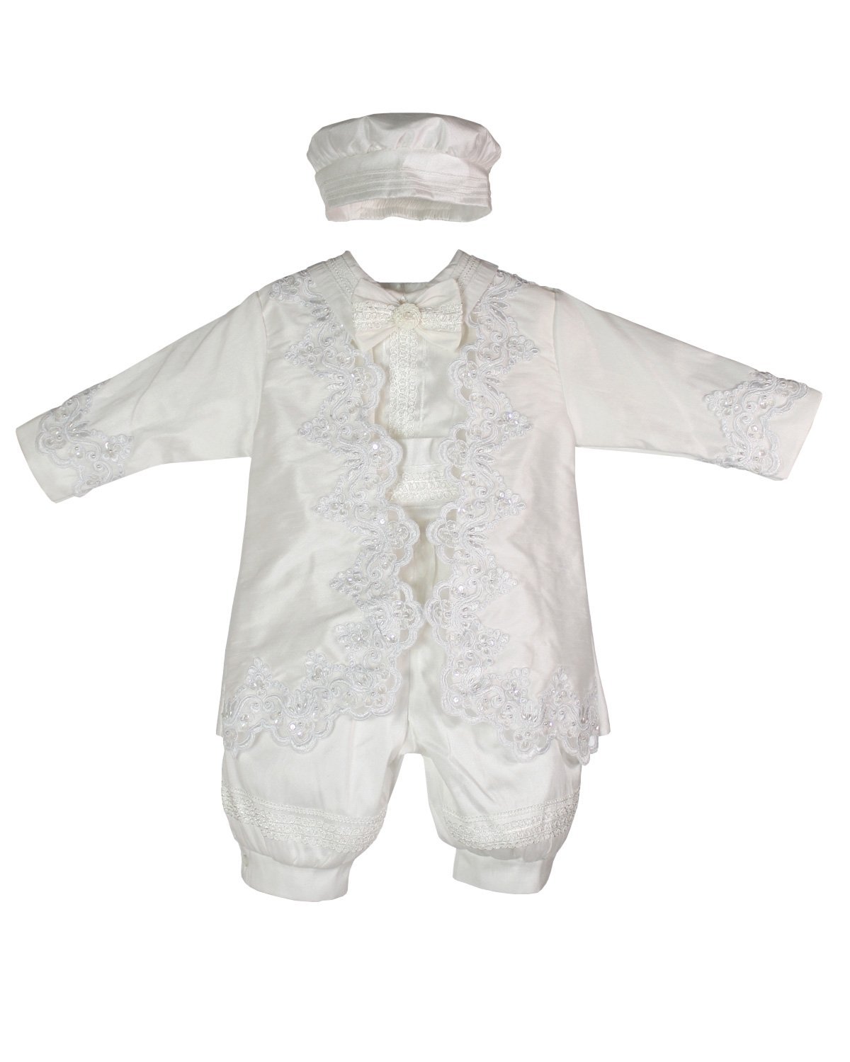 This boy's christening gown made of shantung presents scene details with rhinestones that gave it a touch of elegance and sophistication. Your baby will look like a true prince on his special day with this Maylin garment, a brand recognized for its quality and excellence.