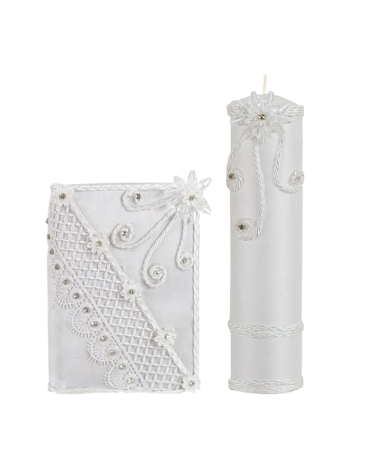 El Kit de Primera Comunión Modelo Briana es el complemento perfecto para celebrar este sacramento especial. Este kit incluye una hermosa Biblia, una vela y un rosario, todos diseñados con cuidado y atención al detalle. Tanto la Biblia como la vela están adornadas con bordados en forma de malla, pequeñas flores 3D, lazos en forma de rizos, así como perlas y pedrería, lo que añade un toque de elegancia y encanto.