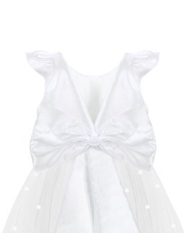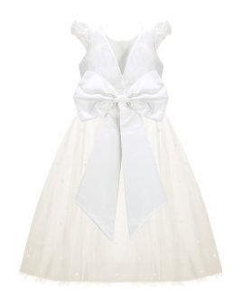 La blusa elaborada de tafeta y la falda de forro, velo con perlas al tono del vestido le Dara a tu pequeña un look de ensueño y elegancia para cualquier ocasión especial. Sus tejidos de alta calidad y su diseño único le harán destacar entre la multitud.