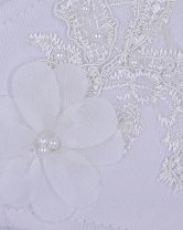 Cubrebocas de Primera Comunión Elizabeth: decorado con flores 3D, pedrería y perlas, combinando elegancia y protección para un día especial.