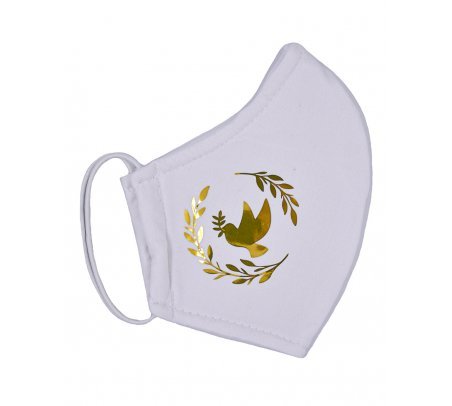 Cubrebocas de Primera Comunión Diana: decorado con un delicado sublimado de una paloma rodeada de guías de hojas, simbolizando la paz y la pureza en un día especial.