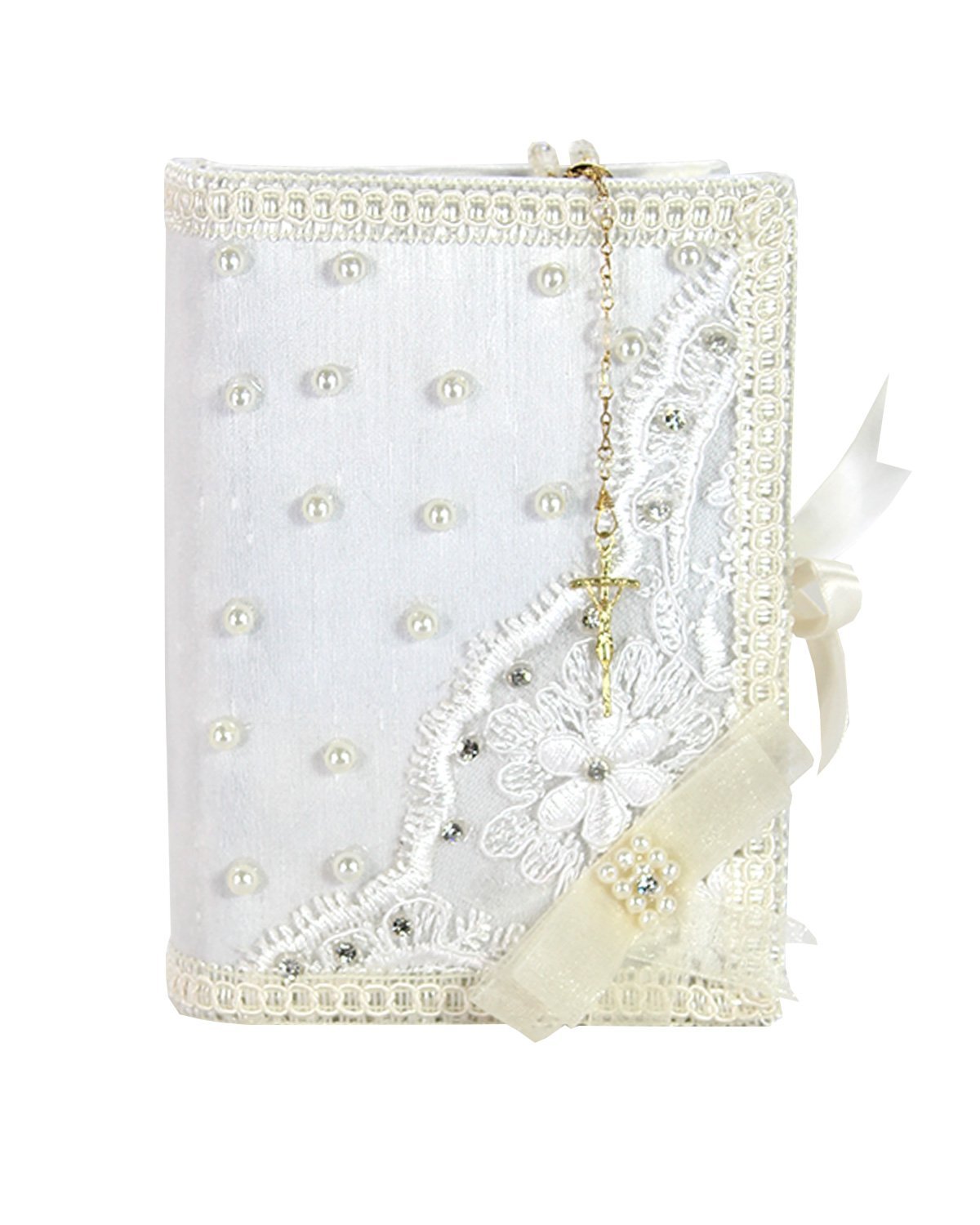 El Kit de Primera Comunión Modelo Kathy es una opción encantadora que incluye una biblia, una vela y un rosario. Tanto la biblia como la vela están adornadas con un delicado bordado de flores y hojas, complementado con un elegante lazo de listón y detalles bordados en las orillas. Además, se añaden perlas y pedrería para realzar la belleza de cada elemento del conjunto.