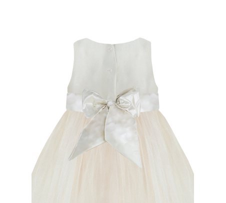 Este vestido de fiesta para bebé de la marca Maylin es suave y cómodo, elaborado con forro y velo de alta calidad. La blusa incluye un adorno de flores para agregar un toque de dulzura y elegancia al diseño del vestido.