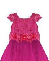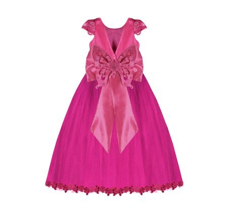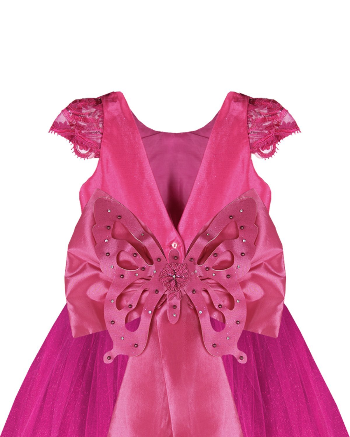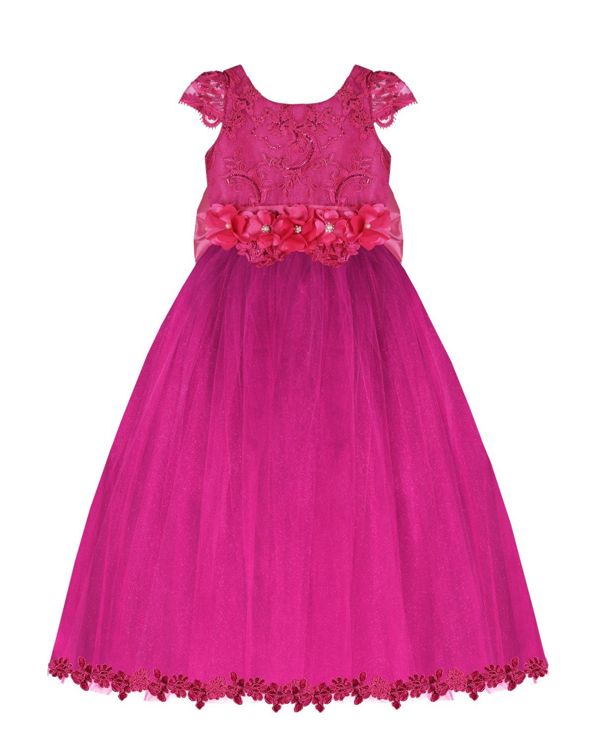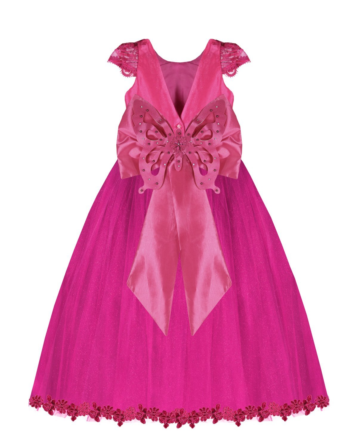 Vestido de Niña elegante, tul Glittel con bordado y flores, moño en forma de mariposa con perlas y cristal.