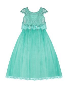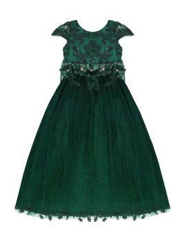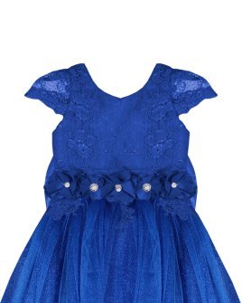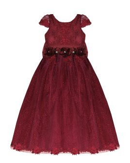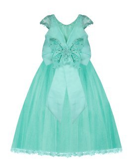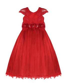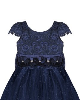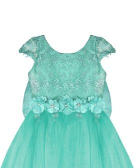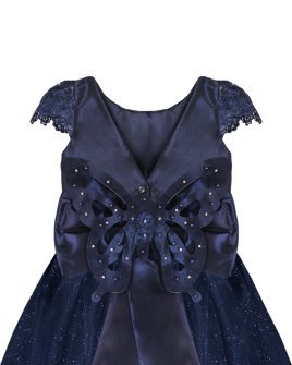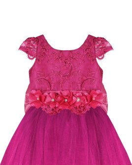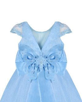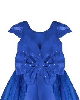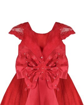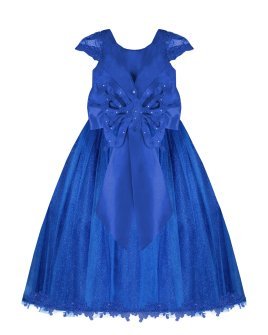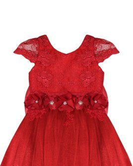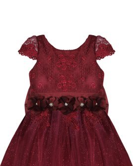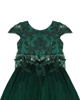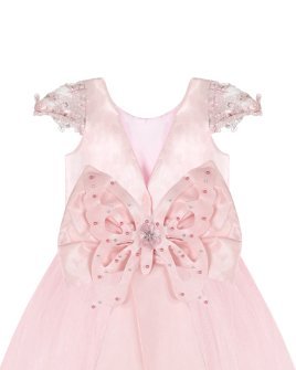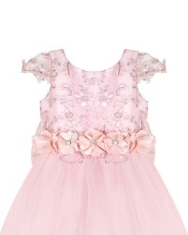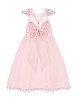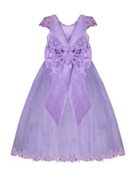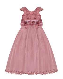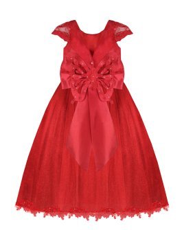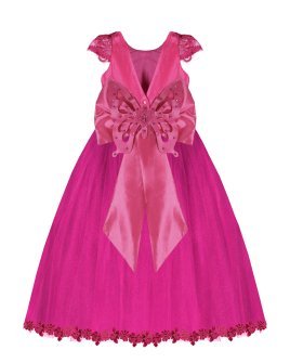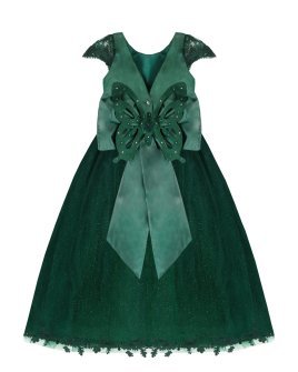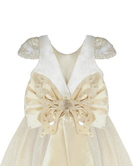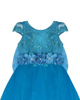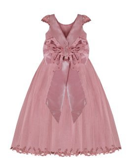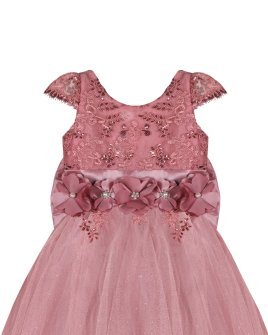 Vestido de Niña elegante, tul Glittel con bordado y flores, moño en forma de mariposa con perlas y cristal.