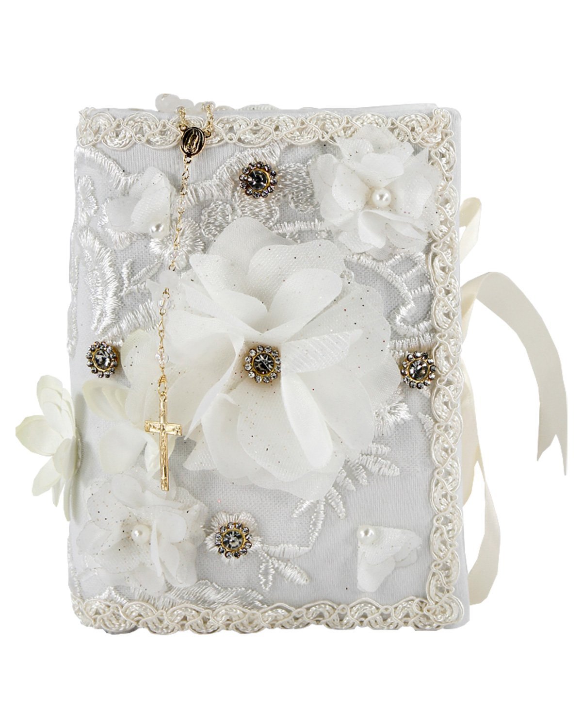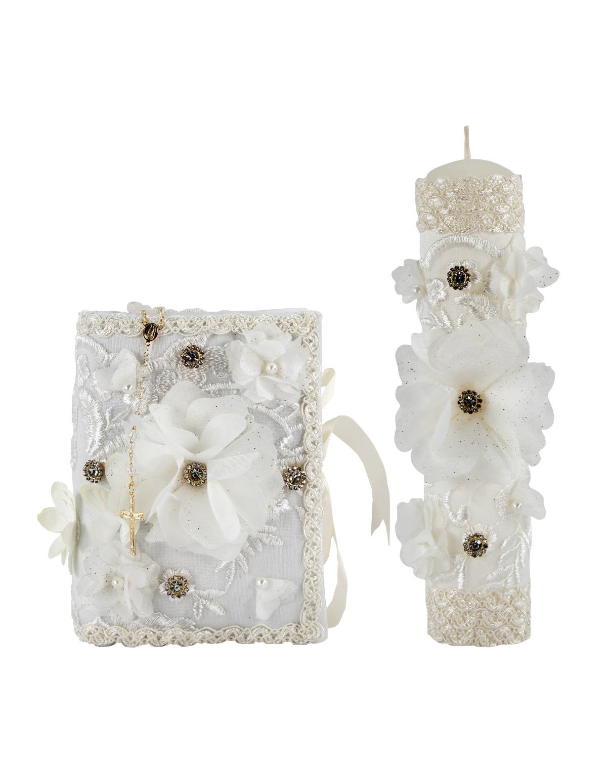 Celebra la Primera Comunión con gracia y belleza con nuestro encantador Kit de Primera Comunión Modelo Zaira. Este kit excepcional incluye una preciosa biblia, una vela y un rosario, cada uno decorado con detalles cuidadosamente elaborados. La biblia y la vela están adornadas con hermosas flores en relieve 3D, resaltadas con centros de perlas y pedrería, además de un bordado de guías que añade un toque de elegancia por la orilla.