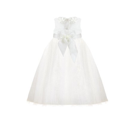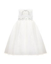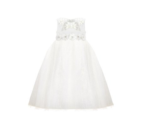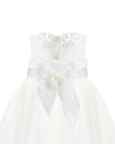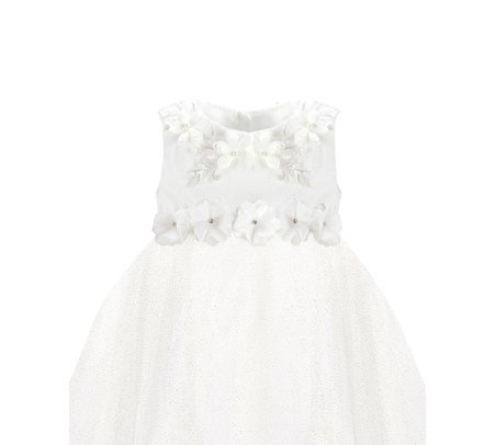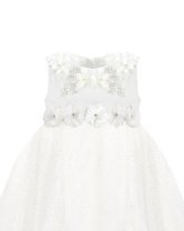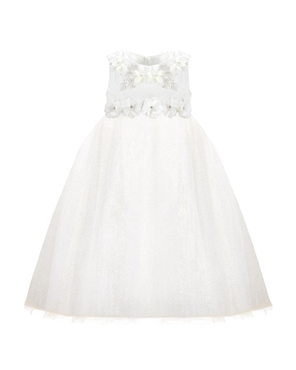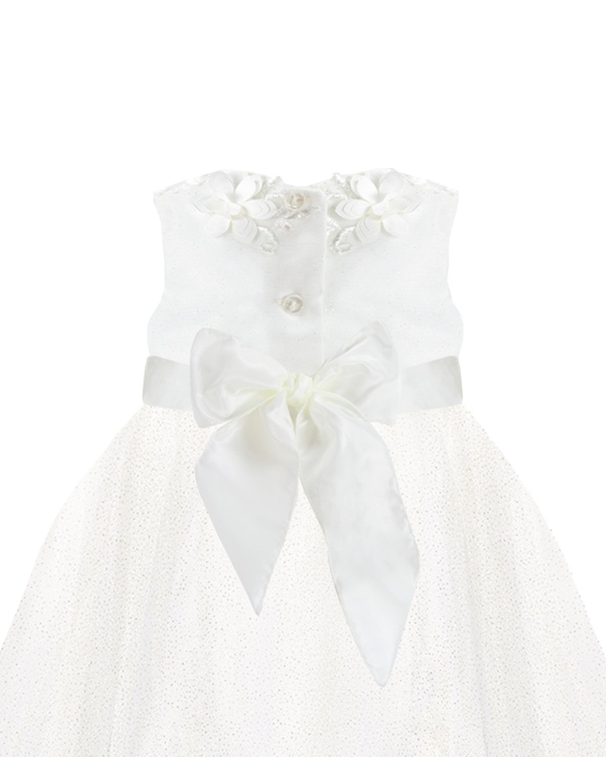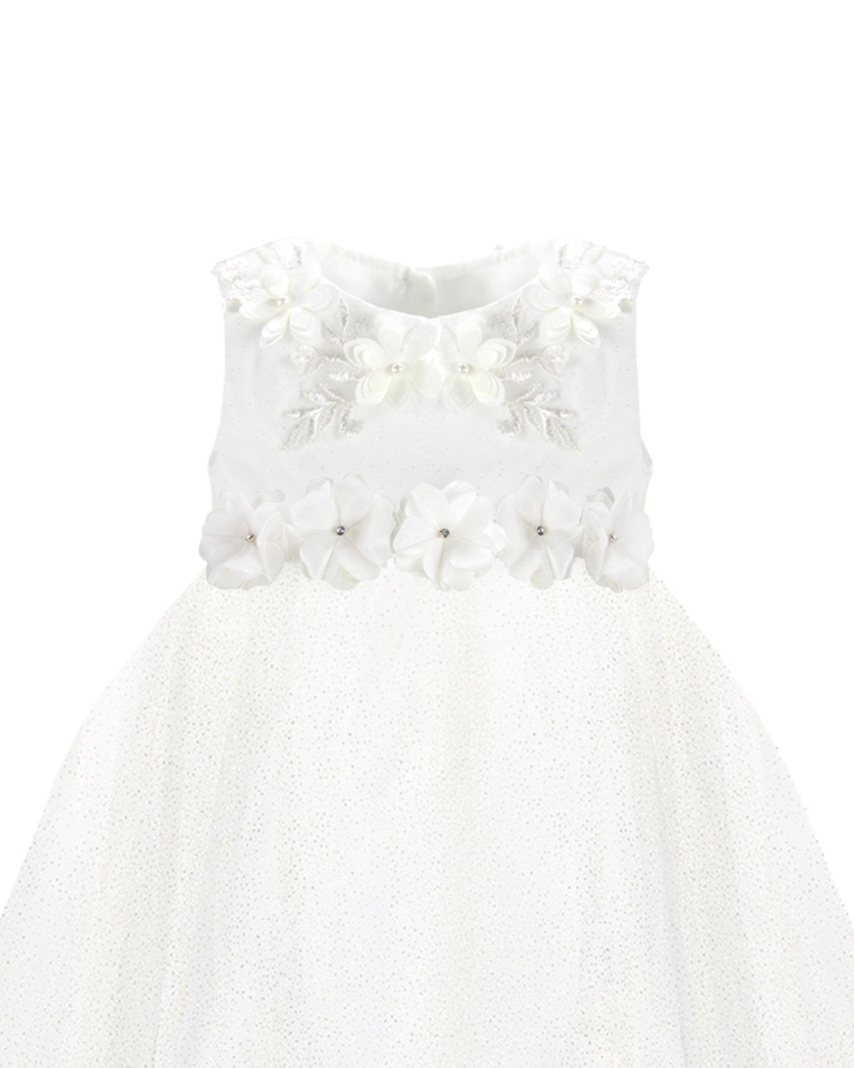 Este vestido de fiesta para bebé de la marca Maylin está hecho de forro suave, velo delicado, glitter y tiene detalles de bordado con flor en 3D en la blusa.