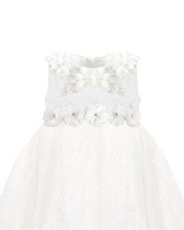 Este hermoso vestido de fiesta para bebé es perfecto para cualquier evento especial. El vestido está elaborado con forro suave y velo delicado, lo que lo hace muy cómodo para la piel delicada de tu bebé. La blusa tiene detalles de bordado con flor en 3D, lo que le da un toque elegante y sofisticado al vestido. Además, cuenta con glitter en todo el vestido para un brillo sutil. La marca Maylin se destaca por su alta calidad en la confección de ropa para bebé y este vestido no es la excepción.