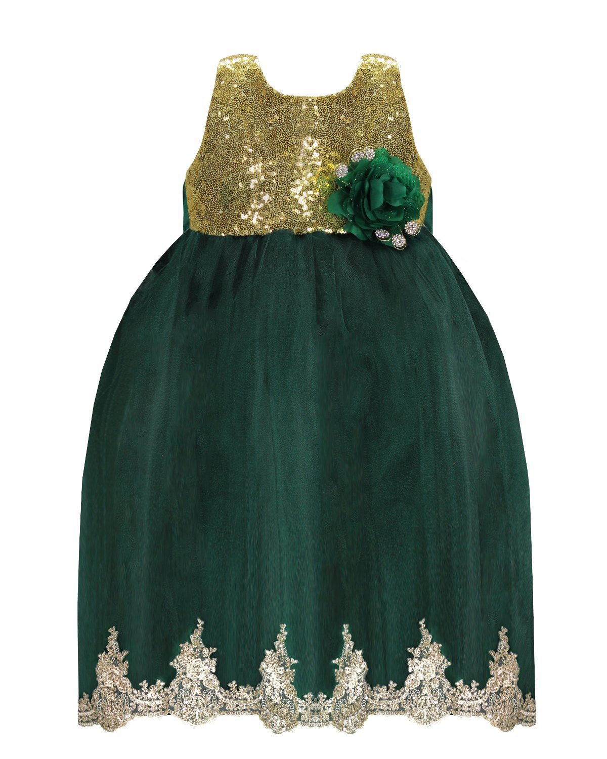 This Maylin baby party dress is made of soft lining, delicate veil, sequin and gold lace at the bottom for an elegant touch.