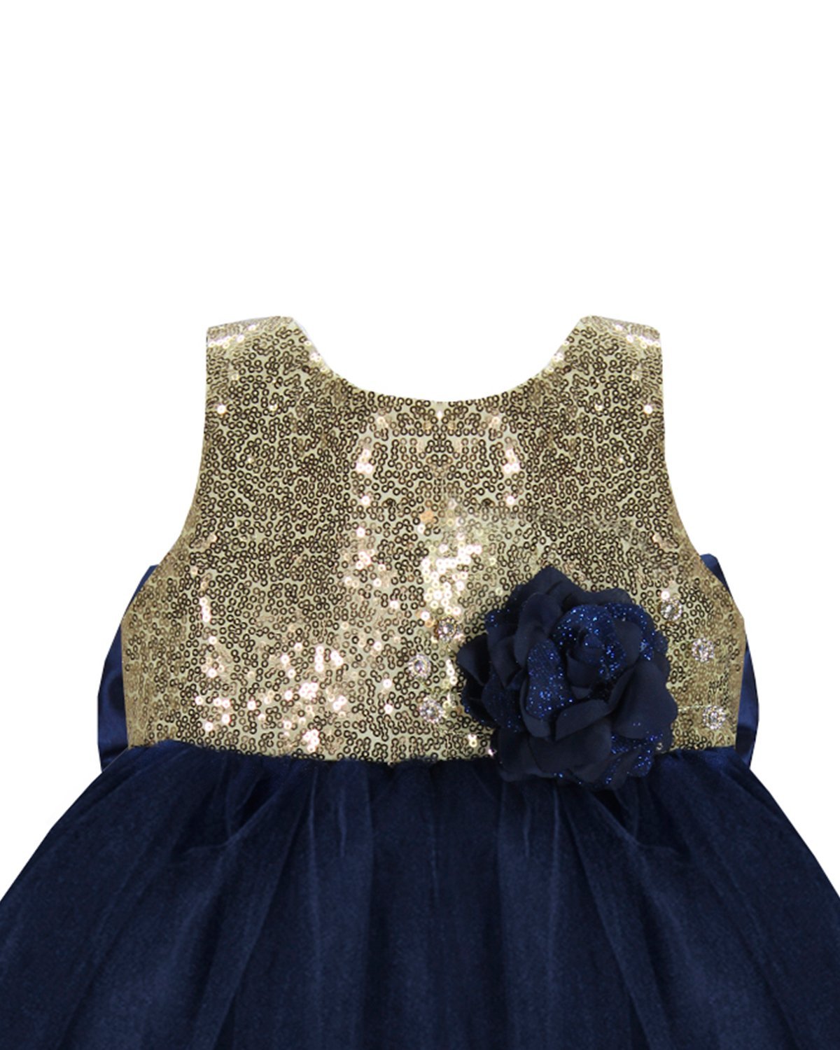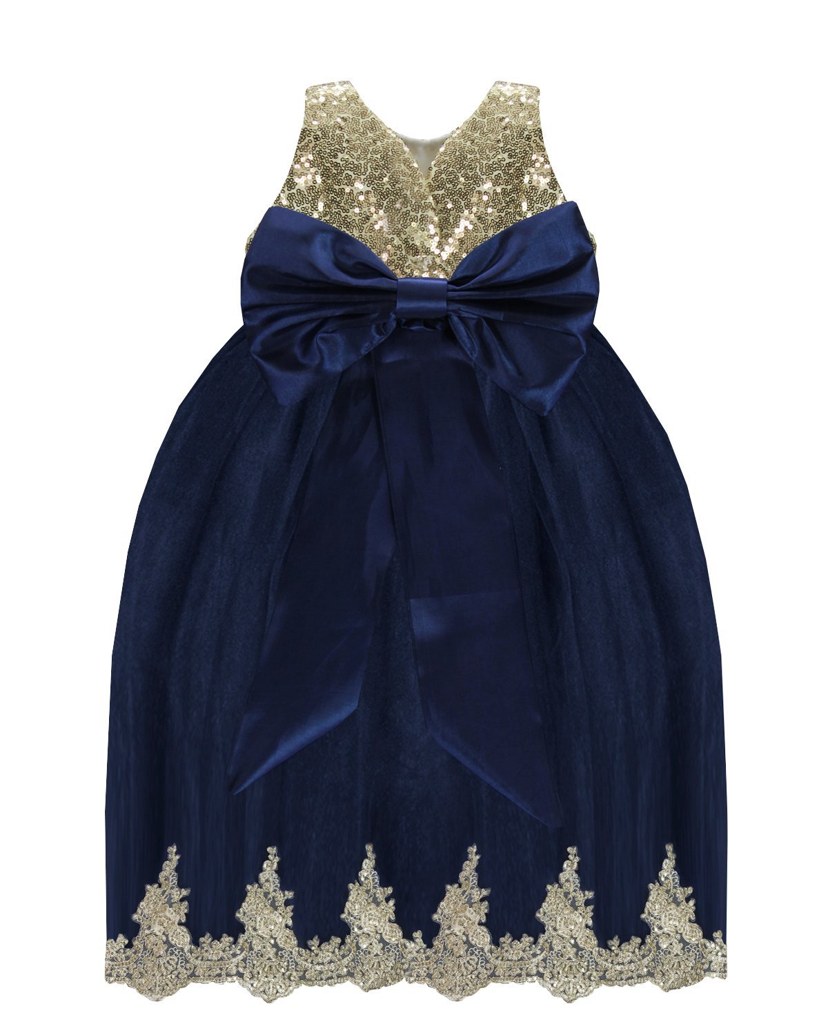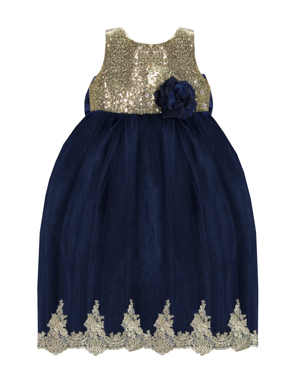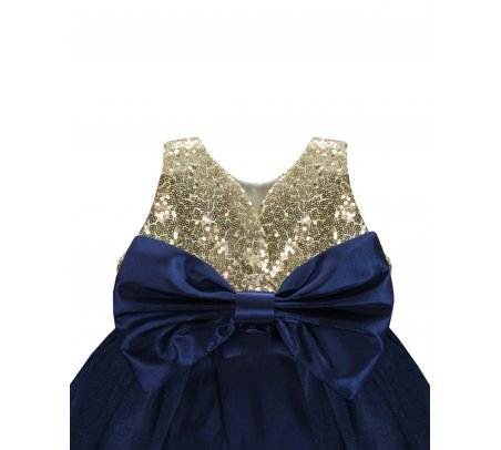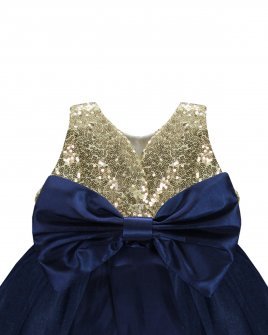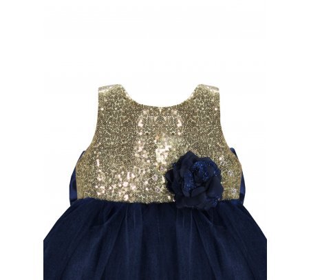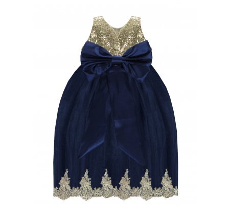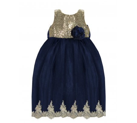 Este vestido de fiesta para bebé de la marca Maylin está hecho de forro suave, velo delicado, lentejuela y blonda en color oro en la parte inferior para un toque elegante.