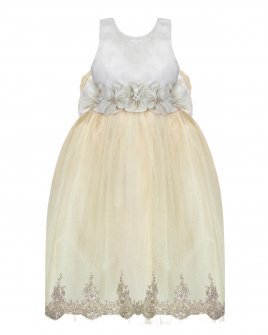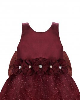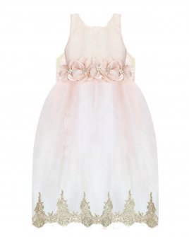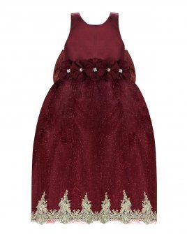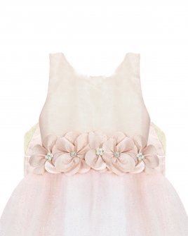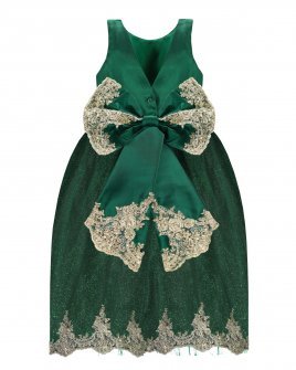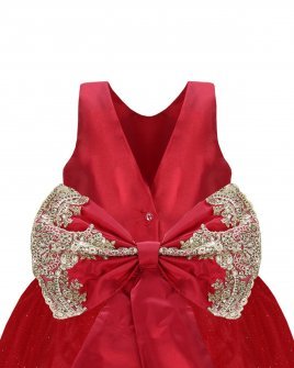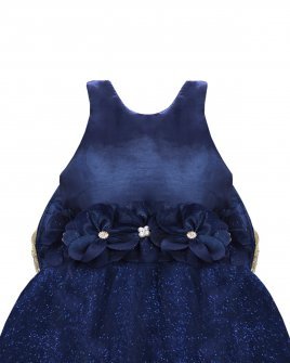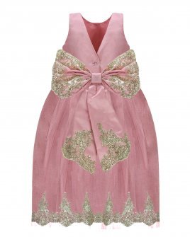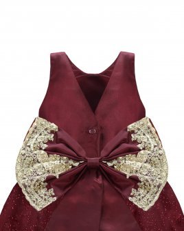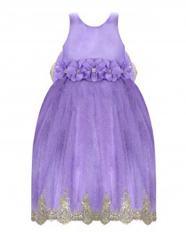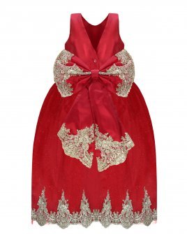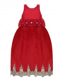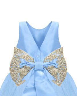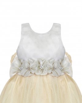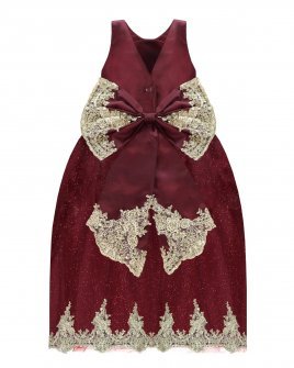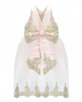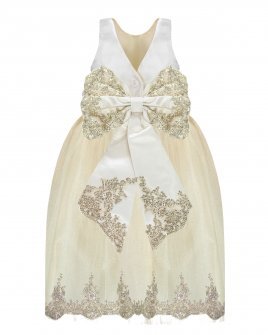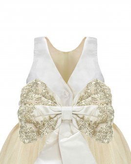 Este maravilloso vestido para niña es la elección perfecta para lucir encantadora en cualquier ocasión o evento especial. Está confeccionado con tafeta, glitter brillante, tul y una cenefa en la parte inferior. Un moño con acabado en encaje oro le aporta un toque de elegancia y un brillo único a su look. tu pequeña se sentirá única.