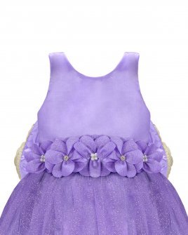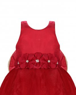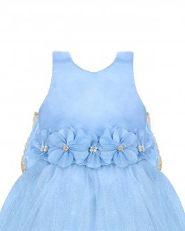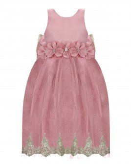 Hermoso vestido de niña, falda de tul con bordado, blusa de lentejuela y un adorno de flor con moño en la espalda.