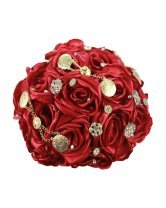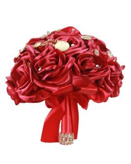 Quinceañera Bouquet with ribbon roses, adorned with beadwork and pearls, perfect to complement your look on this special day.
