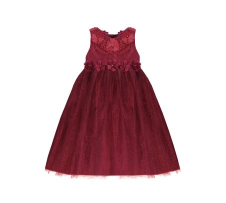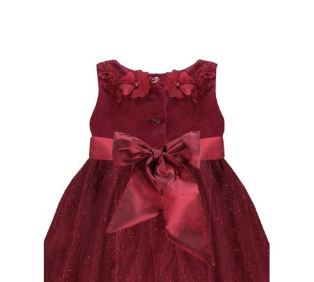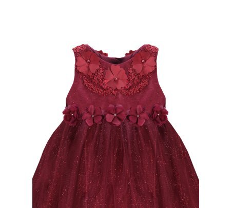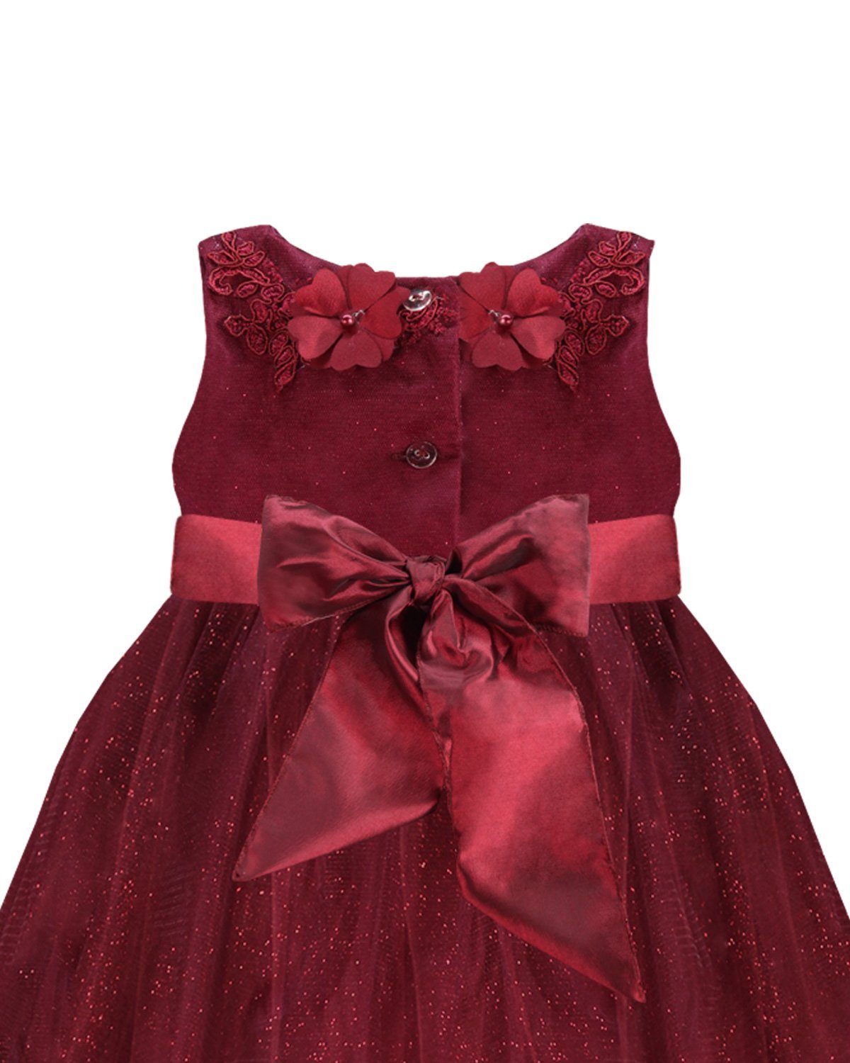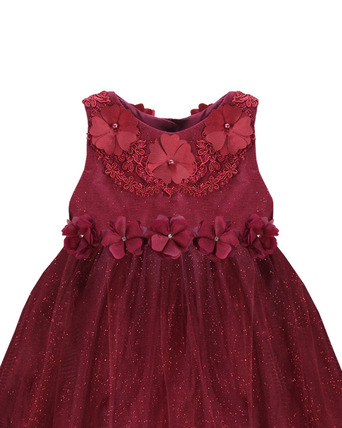 Este vestido de fiesta para bebé de la marca Maylin está hecho de forro suave, velo delicado, glitter y tiene detalles de bordado con flor en 3D en la blusa.