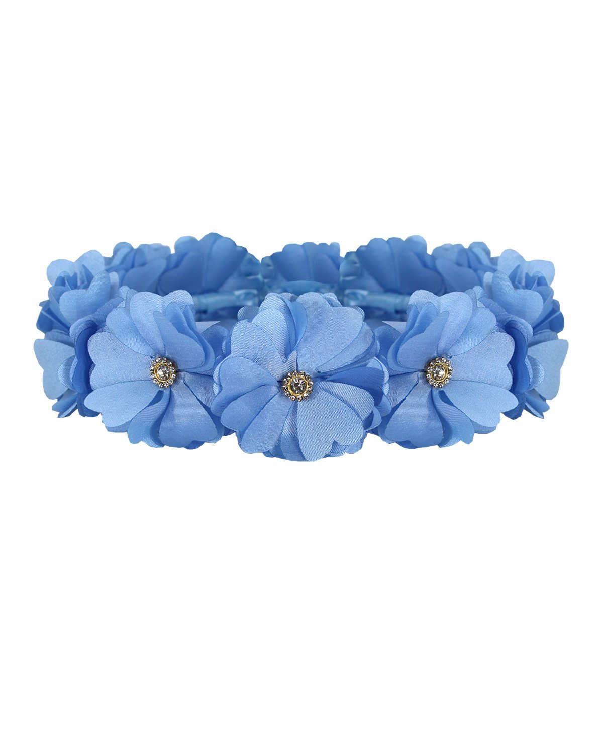 La Corona de Flores de Tafeta es una pieza elegante y delicada confeccionada con tela de tafeta cortada a láser. Decorada con centros de circonia y perlas, esta corona añade un toque de brillo y sofisticación a cualquier ocasión especial.