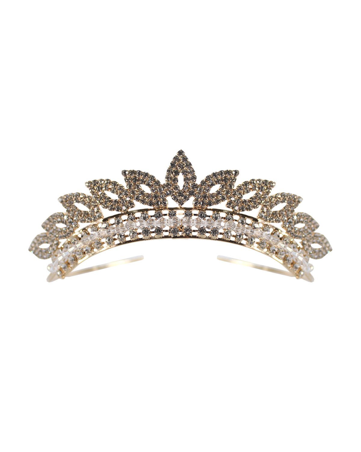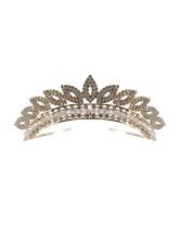 The Julia Tiara for girls is an elegant accessory crafted with rhinestones and transparent pearls set in a brass frame. Ideal for special occasions, this tiara enhances your daughter's natural beauty.