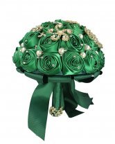 Verona Quinceañera Bouquet, made with ribbon flowers and decorated with rhinestones and pearls, ideal for adding elegance and glamour to your celebration.