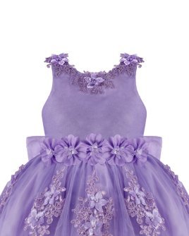 Princess cut dress Blouse made of taffeta with embroidery applications elegant handmade flower ornament decorated with pearls and rhinestones stones at the waist, back with "V" neckline, large taffeta bow with embroidery applications. Glitter tulle and tulle skirt With embroidered medallions to give an elegant touch to our garment