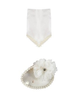 Kit de Bautizo Eva con vela, conchita y paño decorados con tela, bordado en las orillas y adornos de flores 3D con pedrería.