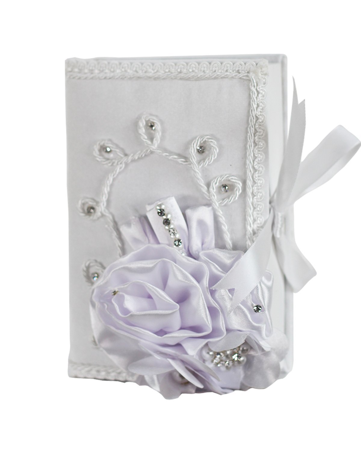 Celebra la Primera Comunión de tu ser querido con nuestro elegante Kit de Primera Comunión Veronica. Este kit incluye una biblia, una vela y un rosario, elementos esenciales para esta ocasión especial. Cada pieza está bellamente decorada con bordados, pedrería y perlas, junto con delicadas flores 3D hechas de listones. Este kit está diseñado para hacer de la Primera Comunión un evento memorable y significativo, añadiendo un toque de elegancia y belleza a la celebración.