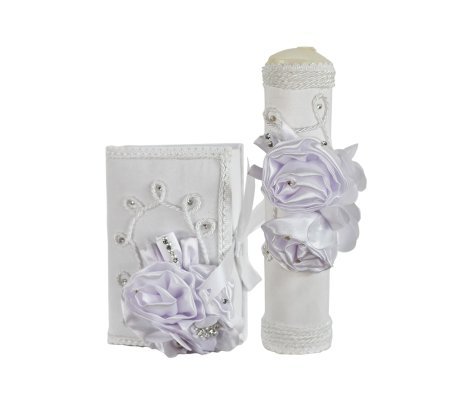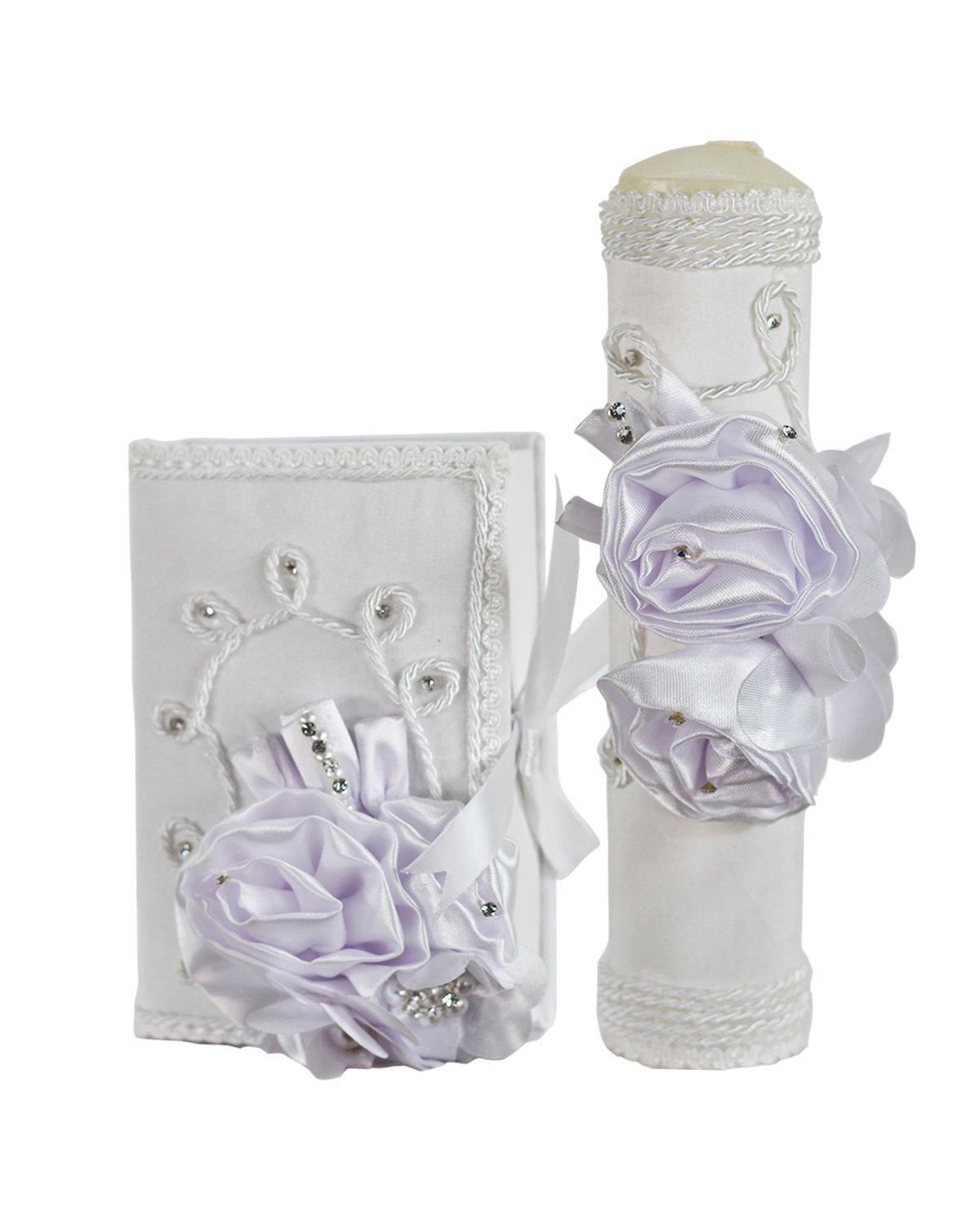 El Kit de Primera Comunión Veronica ofrece elegancia y belleza para celebrar este importante sacramento. Incluyendo una biblia, una vela y un rosario, cada pieza está decorada con bordados, pedrería y perlas, y flores 3D hechas de listones.