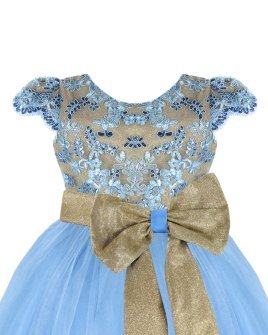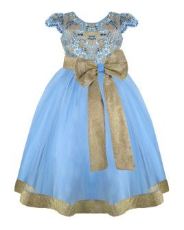 The Dinora Girl's Dress Model shines with its elegance and charm. Crafted in glitter fabric with delicate embroidery, it features an adjustable bow at the waist and a skirt with multiple layers of tulle and a strip of glitter fabric at the hem, creating a stunning look for any special occasion.