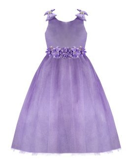 The Melina Girl’s Dress is a charming piece that blends sweetness and elegance, perfect for special occasions. Made from satin, lining, and glitter tulle, this design offers a subtle yet sophisticated shine. The satin bodice features a delicate round neckline, an elegant waistband adorned with 2D flowers, and bows on the shoulders for a distinctive touch. A stylish V-cut back adds a refined detail, while the skirt, with lining and two layers of glitter tulle, provides volume and movement, ensuring an unforgettable look.