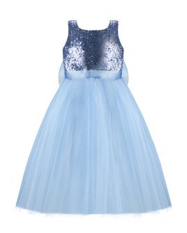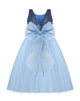 Beautiful and elegant girl's dress, made of tulle with sequin detail on the bodice and an elegant bow on the back.