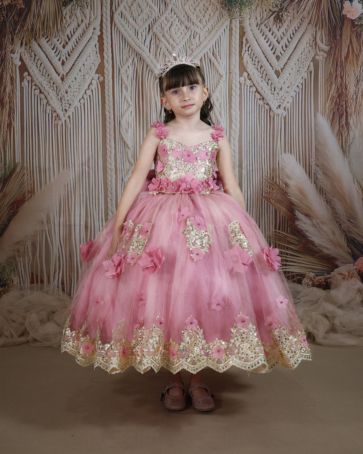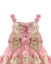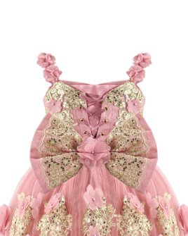 Off the shoulder corset dress, lined with Glittel and embroidery, with 3D flower details.