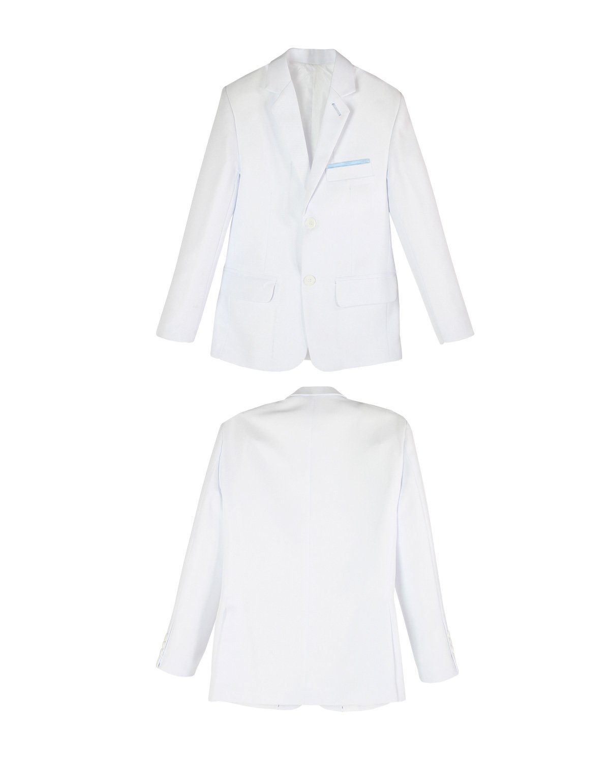Este hermoso traje para niño está hecho de tela Liberty, una tela de alta calidad que es conocida por su suavidad, durabilidad y resistencia. El traje está compuesto por un pantalón y una chaqueta, ambos confeccionados con un tejido que combina 80% poliéster y 20% algodón, lo que hace que sea cómodo de usar durante todo el día. La chaqueta tiene un corte clásico y elegante con solapa y botones en la parte delantera, mientras que el pantalón tiene un diseño simple y elegante. Este traje de Maylin es ideal para ocasiones especiales como bodas, bautizos y comuniones.