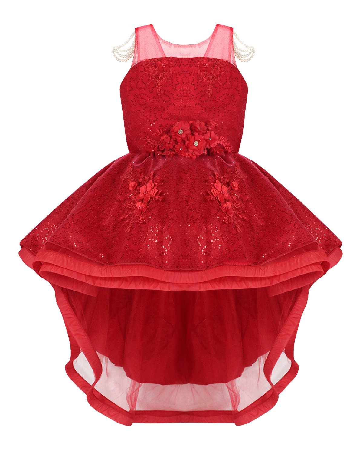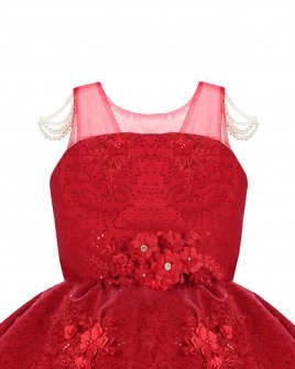 Discover the charm and sophistication of the Maylin girl's party dress. Its unique and different design is highlighted by the precious pearls that adorn the straps, while the combination of lining and sequined taffeta adds a touch of luxury. A short in the front and long in the back style makes it a lovely option for any special event.