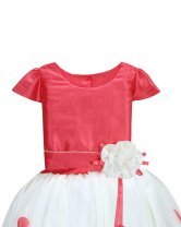 Vestido de fiesta que se destaca por tener formas de pétalos en su falda de tul para dar el efecto princesa que tanto le gusta a las niñas, se encuentra en diferentes colores ya que encontramos en el una hermosa flor al costado que hace la combinación perfecta en los pétalos de la falda y la combinación de su color.