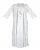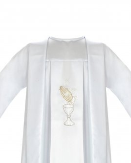 Túnica de Primera Comunión unisex con bordados sacramentales en la parte frontal y en la estola.
