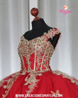 Quinceañera dress made of tulle with a beaded and 3D embroidered corset, skirt with 3D butterflies, and train.
