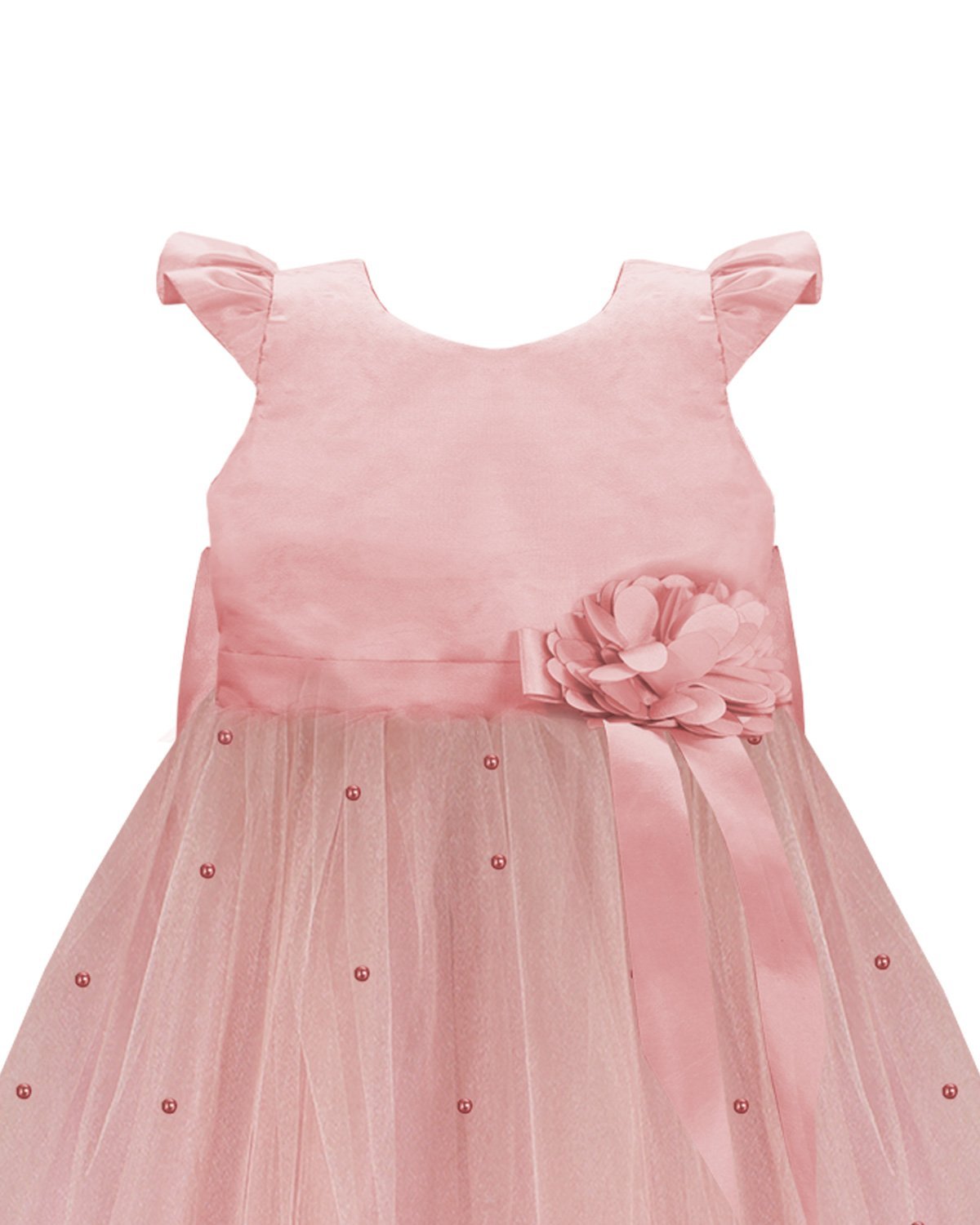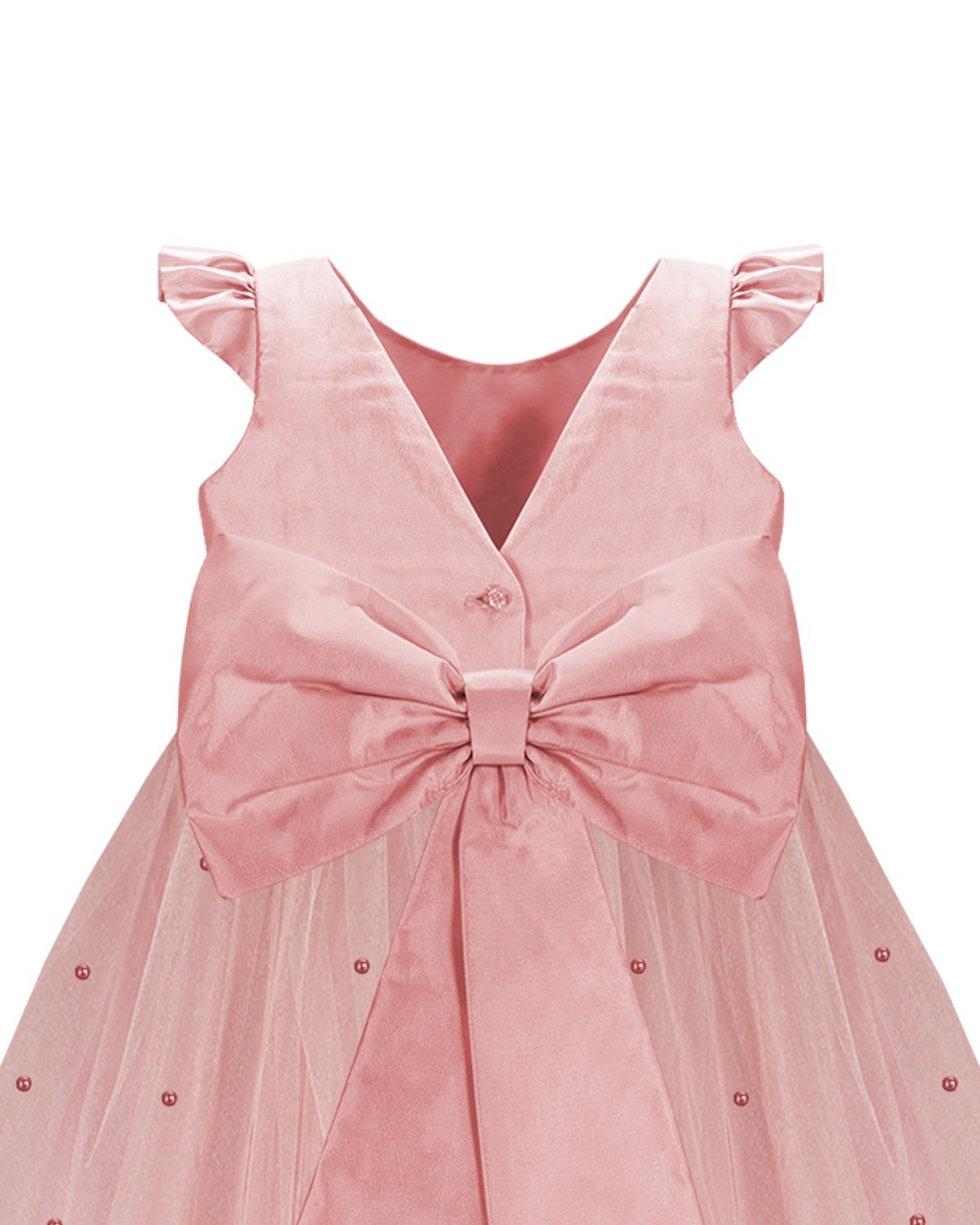 Batita Daniela: taffeta blouse and lined skirt with a pearl-adorned veil. Elegance and charm for special occasions.