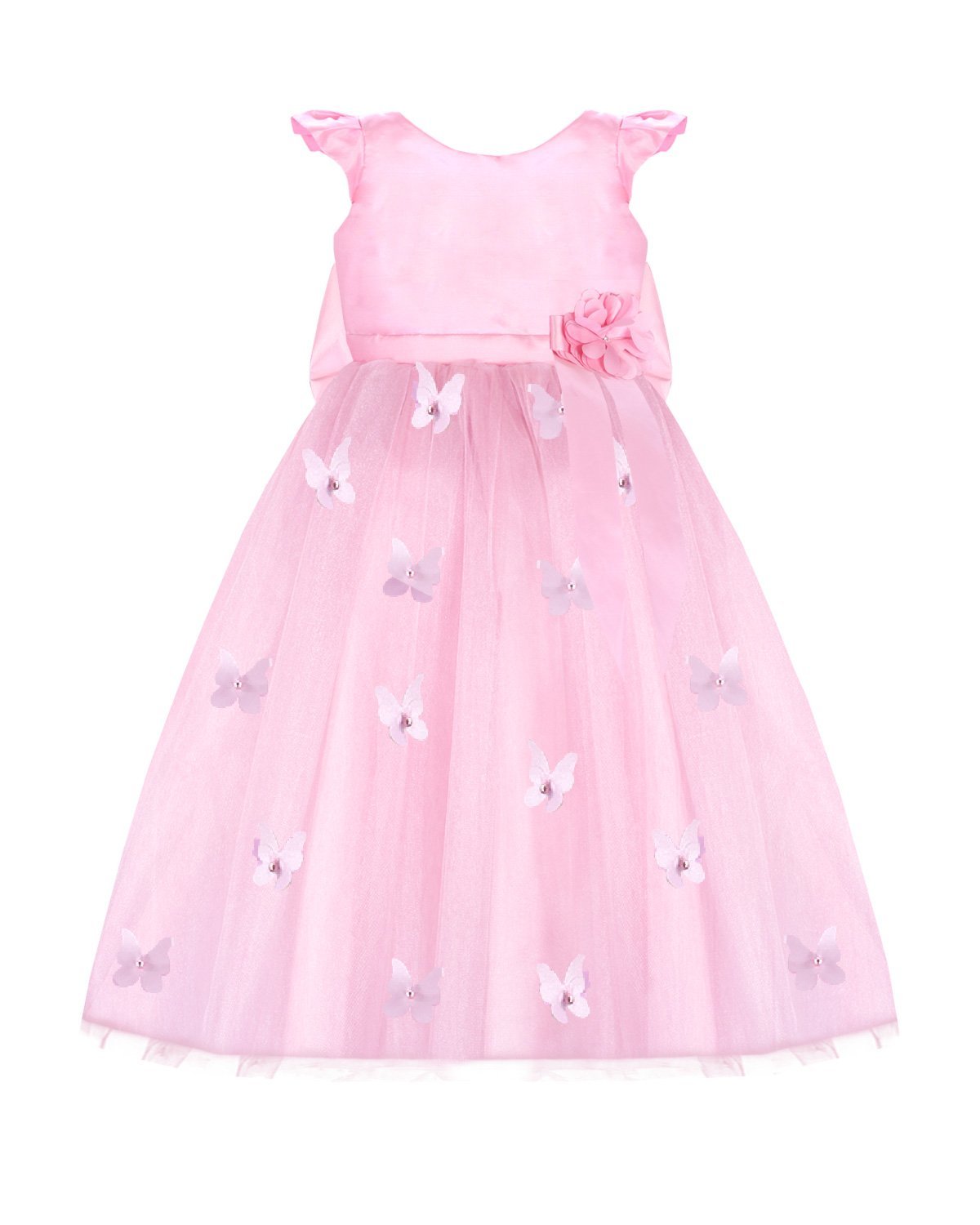 Baby dress with taffeta bodice, lined skirt, and veil decorated with 3D butterflies. Daniela Butterflies model.