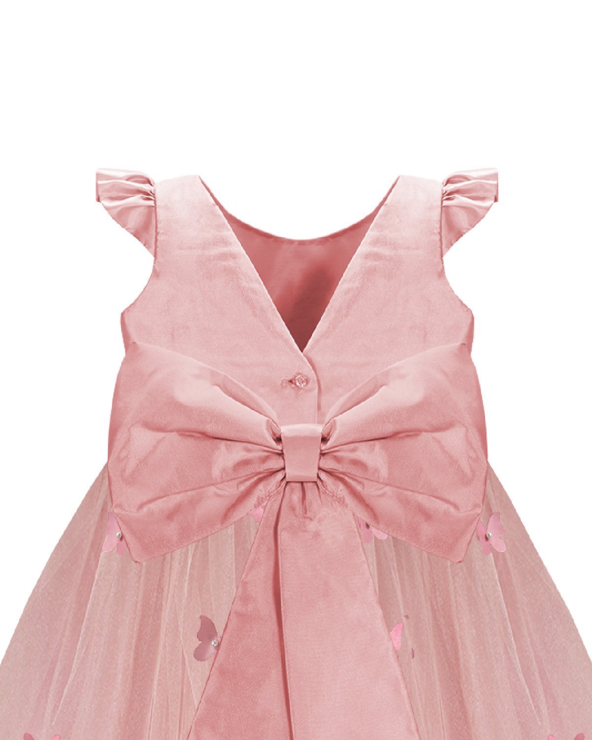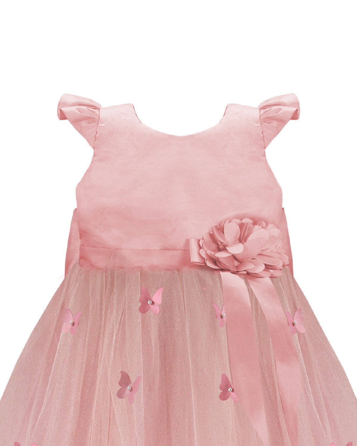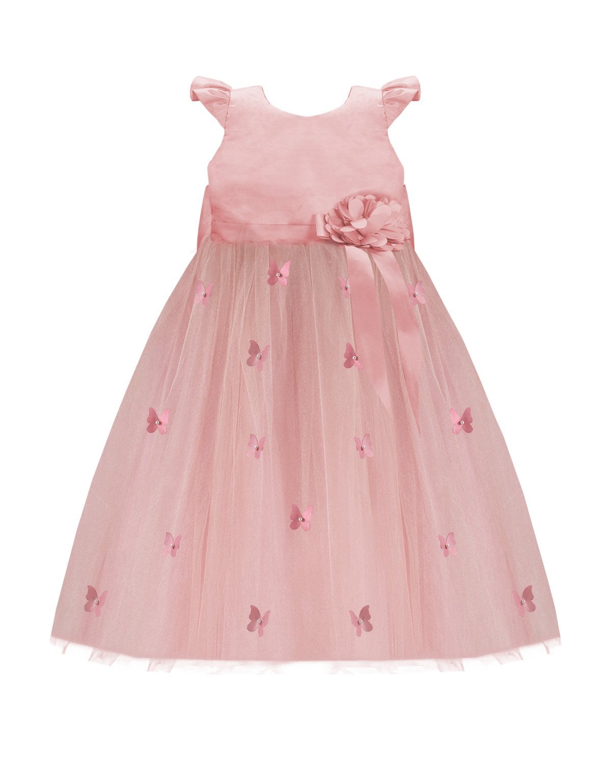 Baby dress with taffeta bodice, lined skirt, and veil decorated with 3D butterflies. Daniela Butterflies model.