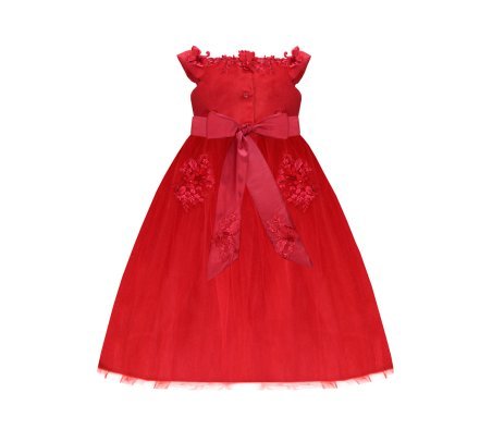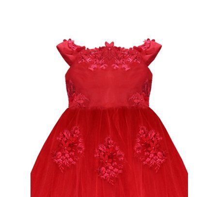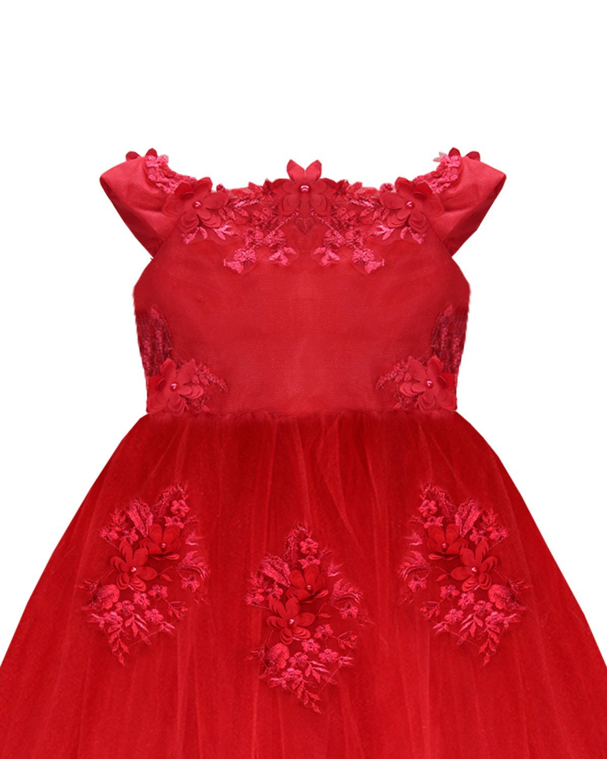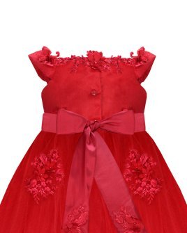 The baby party dress from our Maylin brand is made with high-quality materials, including a soft and comfortable lining and a delicate veil that adds a touch of elegance. In addition, it has beautiful 3D flowers that add a touch of sophistication to the design.