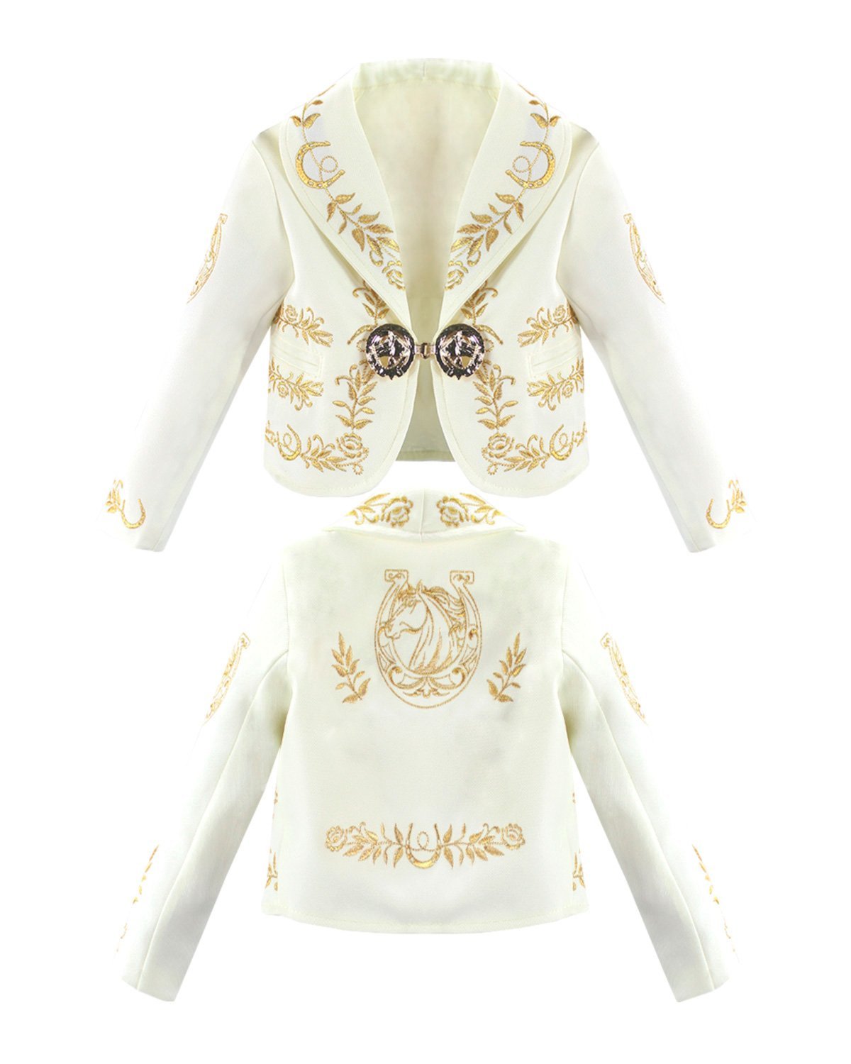 This charro suit for boys from the Maylin brand is made with soft and resistant terylene and has a unique horseshoe embroidered design. Perfect for any special occasion, this charro suit will make your child look stunning.