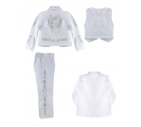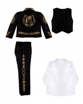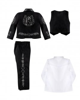 This charro suit for boys from the Maylin brand is made with soft and resistant terylene and has a unique horseshoe embroidered design. Perfect for any special occasion, this charro suit will make your child look stunning.