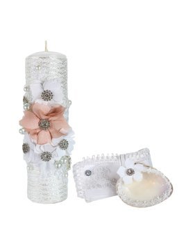 Celebrate your loved one's baptism with elegance and charm with our charming Baptism Chest Kit Bianca. This complete set includes a chest, a candle, a cloth, and a shell, providing you with everything you need to make this day a special and memorable memory. Each piece is beautifully decorated with embroidery, rhinestones, and pearls, as well as delicate 3D flowers, adding a touch of beauty and sophistication to the occasion. This kit is perfect for creating unforgettable memories of such an important moment in your loved one's life.