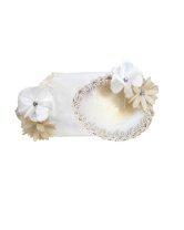 Victoria Baptism Kit with candle, shell, cloth, and elastic headband, adorned with 3D flowers, crystal beading, pearls, and embroidered edges.