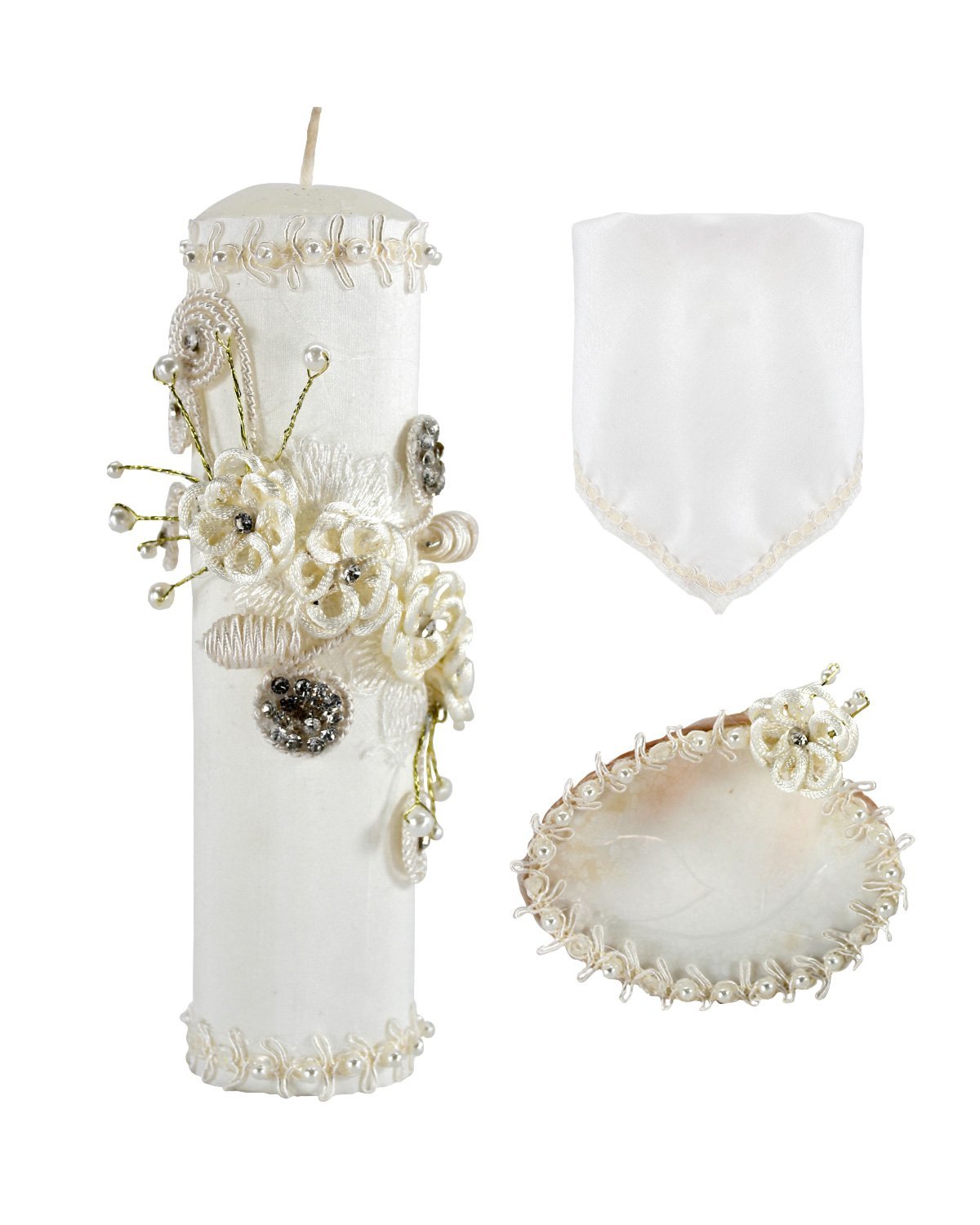 Christening kit, complete set, candle, towel, shell
