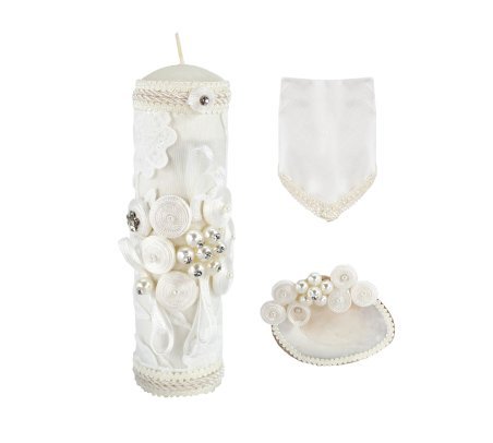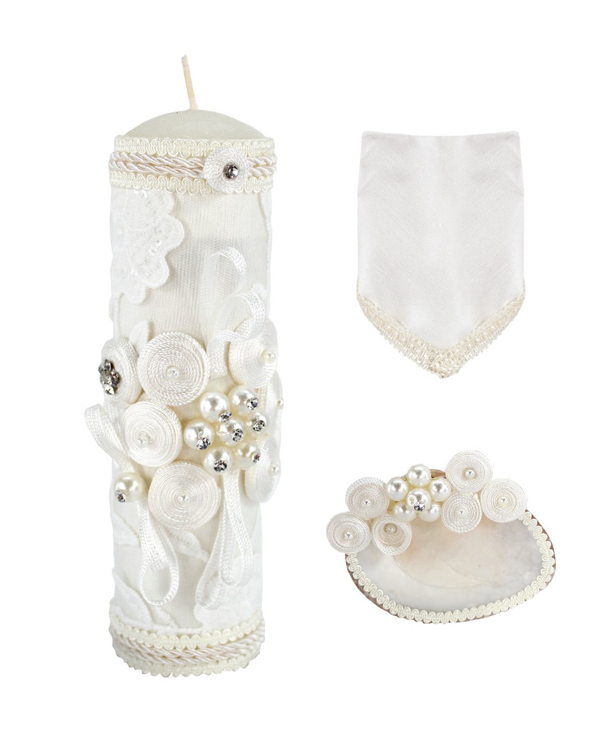 Complete baptism kit, round candle, shell and christening faith. Ideal to complete the perfect game for girl.