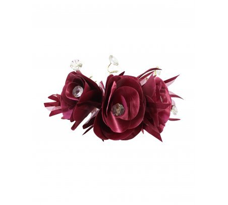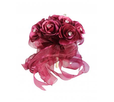 Quinceañera bouquet with laser-cut flowers, assembled on thin wire and decorated with rhinestones, pearls, and ribbons.
