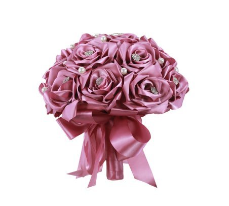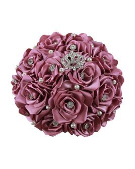 Quinceañera Bouquet with ribbon roses, adorned with beadwork and pearls, perfect to complement your look on this special day.